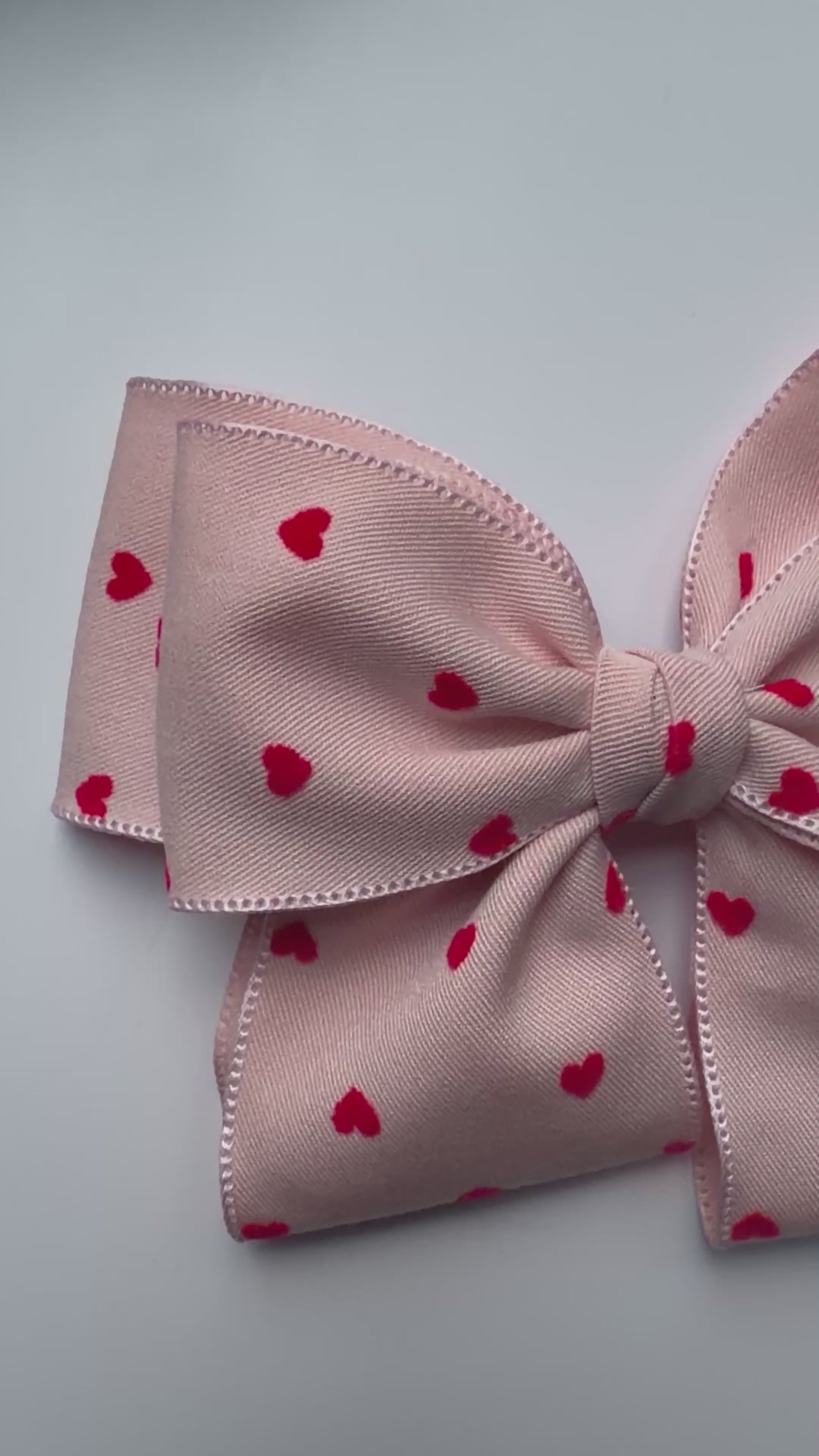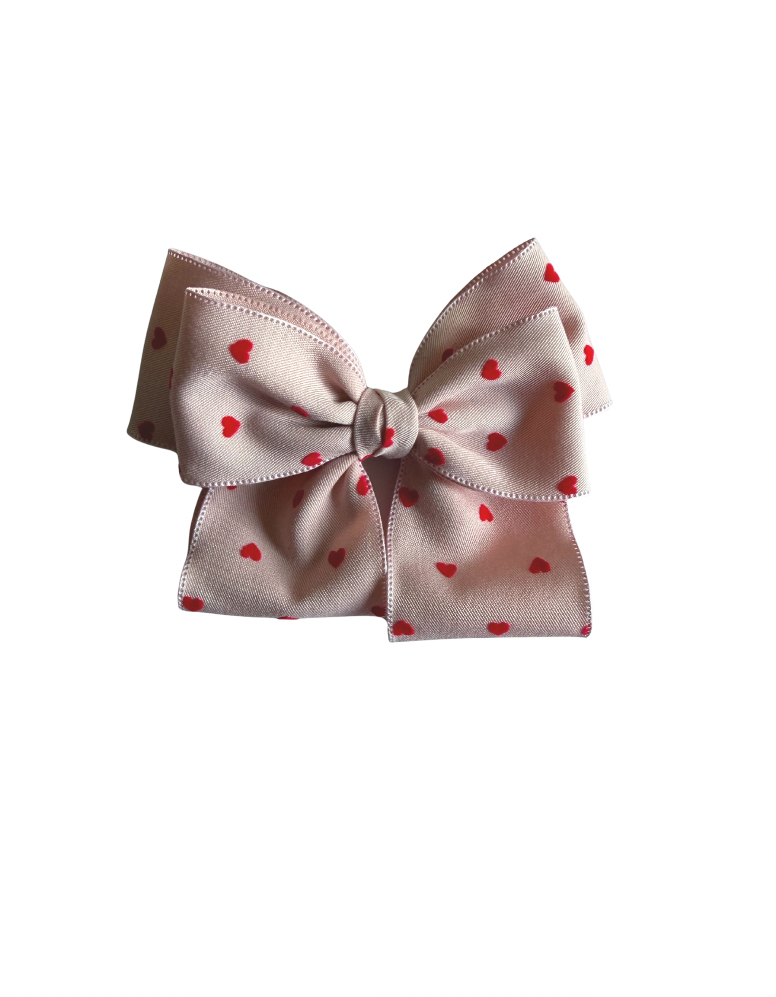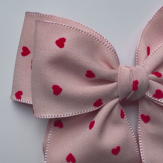 Delicate and charming, our Small Bow Hair Clips Pink Hearts are handcrafted from soft polyester fabric and finished with a secure metal clip for all day wear. Featuring a subtle pink base with red heart detailing, this bow adds a sweet touch to everyday hairstyles or special moments.